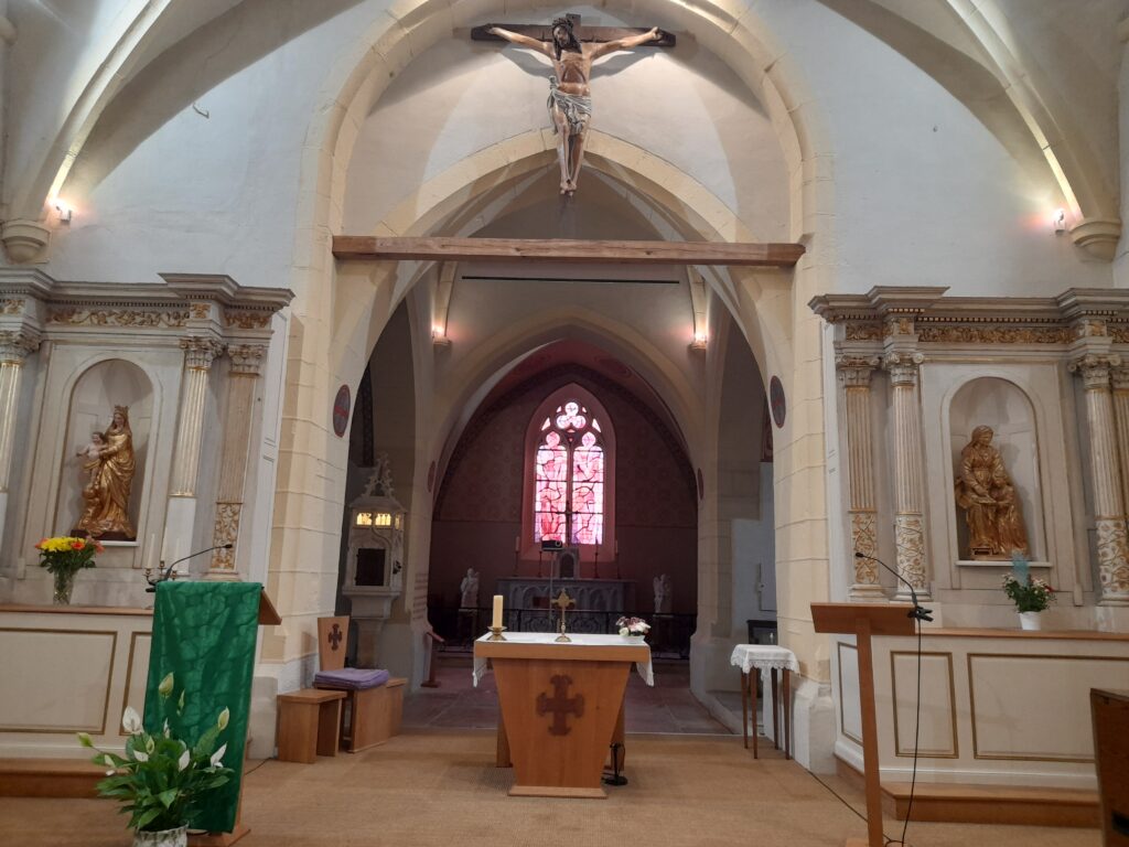 L’église actuelle date des 13e et 14e siècles, de style roman bourguignon, mais elle remplace sans doute un édifice plus ancien, du 7e siècle, au niveau du transept. Le porche et la partie haute de l’église ont été agrandies en 1822-24. Le clocher central, haut de 30 m, abrite trois cloches plus ou moins anciennes.